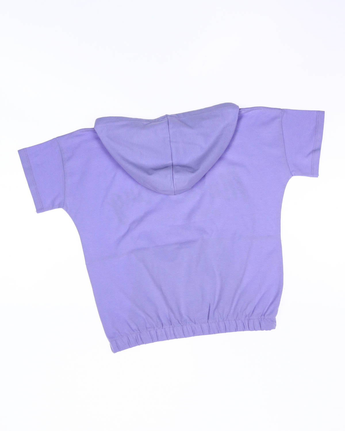 Футболка прямого кроя с капюшоном на резинке. На животе футболки  карман по типу кенгуру.