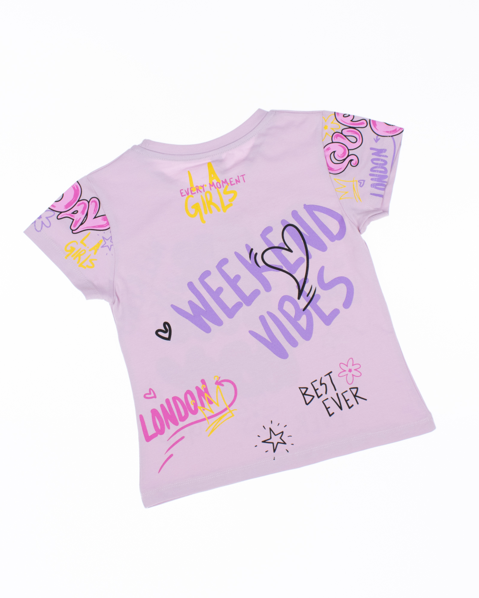 Стильная, комфортная футболка для девочки оптом из высококачественного хлопкового полотна. Декор - контрастный буквенный принт с двух сторон.