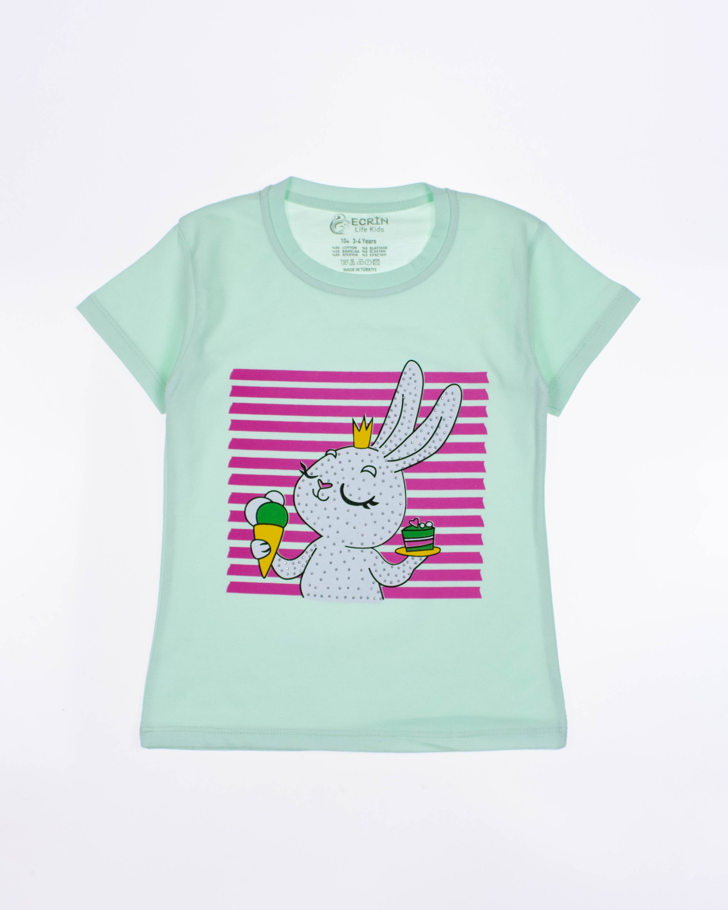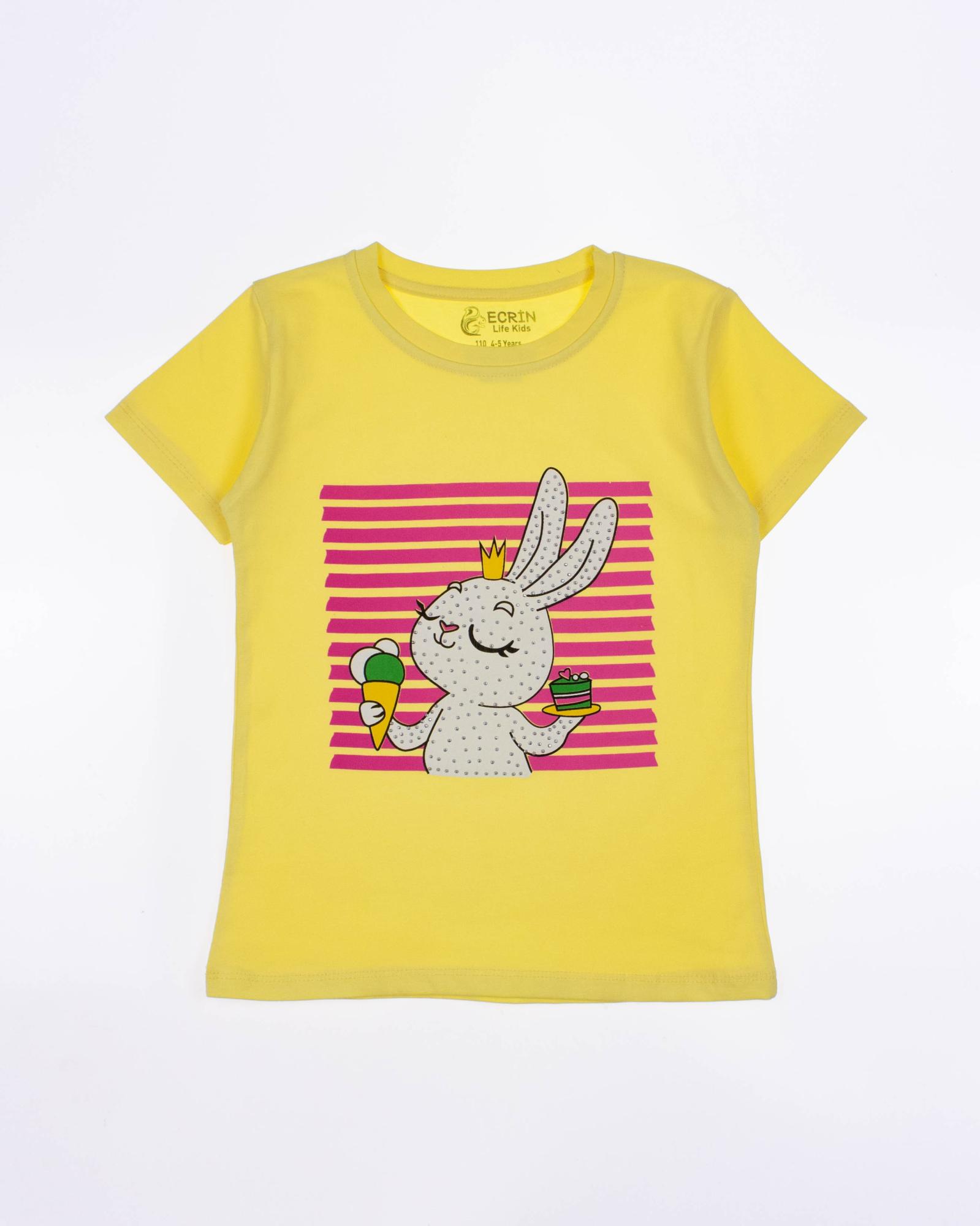 Футболка ECRIN для девочки оптом, производства Турция. Модель приталенного силуэта с короткими рукавами и милым принтом.