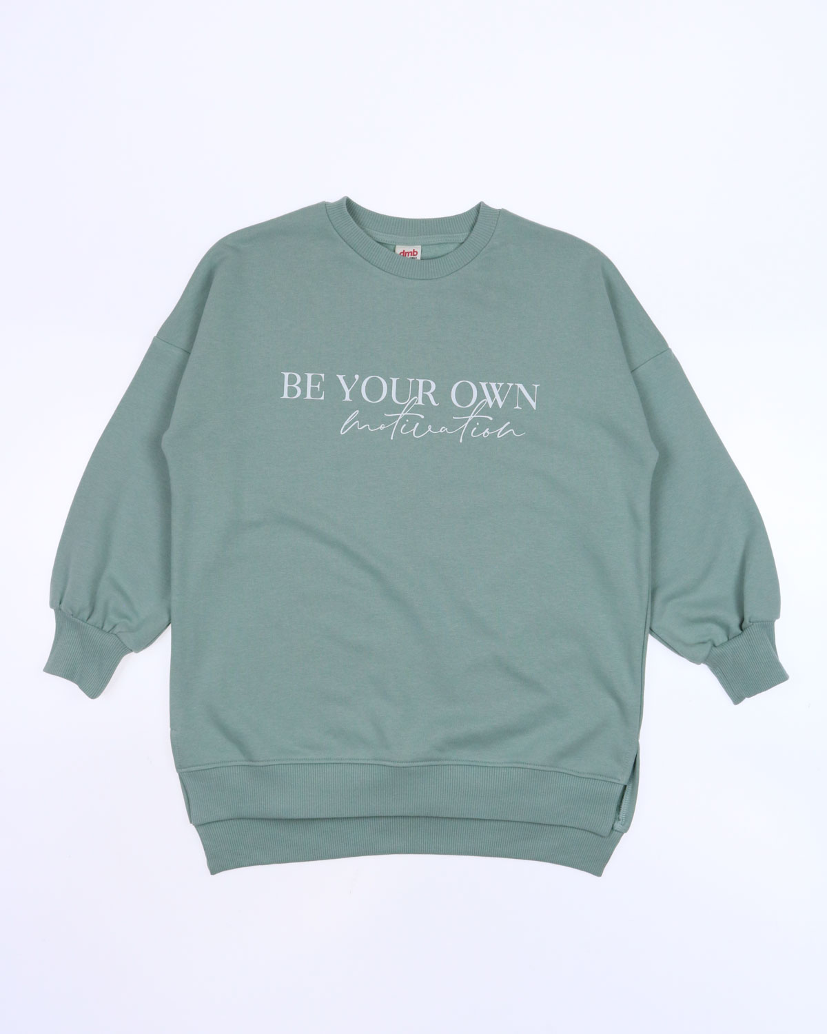 Стильный детский костюм DMB выполнен из трикотажа футер (петля).  Состоит из свитшота с длинным рукавом и брюк. Детали оформления свитшота: горловина и рукава изделия обработаны кашкорсе; перед изделия декорирован принтом в виде надписи; низ  ассиметричный, по боковым швам разрезы; Детали оформления брюк: пояс на широкой резинке, дополнительно регулируется шнурком; по бокам внутренние карманы.