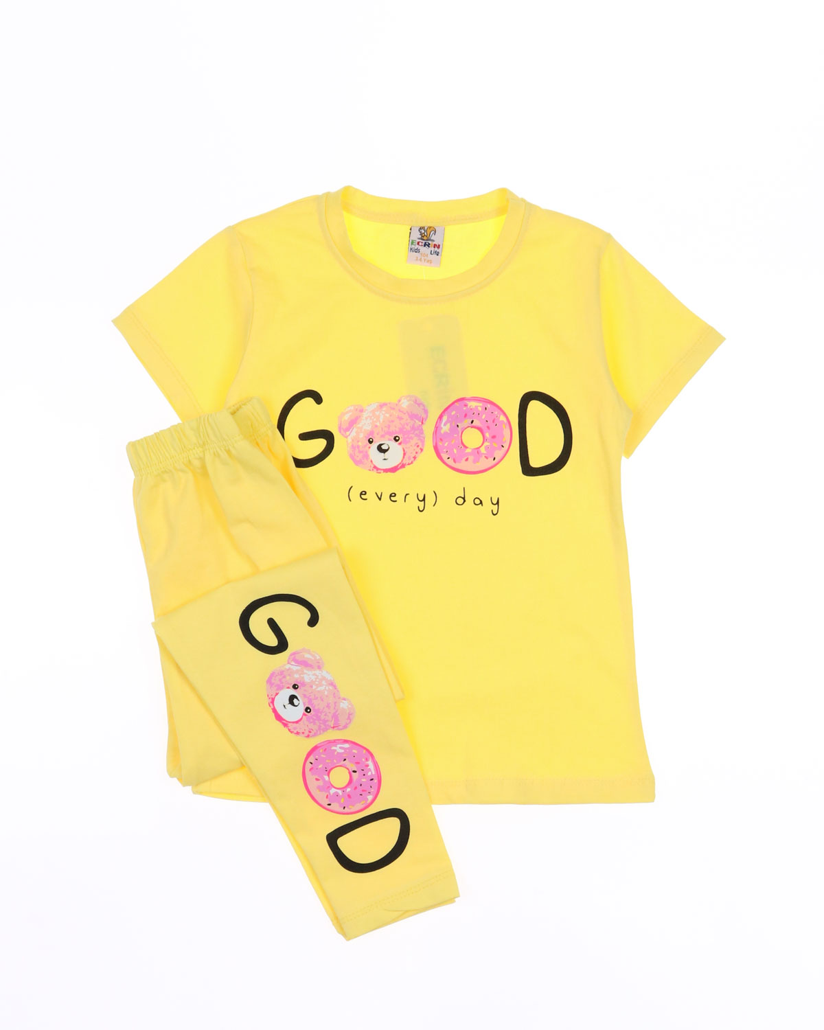 Практичный костюм для девочки оптом состоит из футболки и лосин. Горловина футболки обработана эластичной бейкой. Лосины в поясе на резинке.  Костюм изготовлен из хлопкового полотна кулирка - нежного и мягкого, гипоаллергенного и легкого в уходе. Модель прекрасно подойдет для повседневной носки на улице или дома, для детского сада, а так же для активного отдыха и занятий спортом.