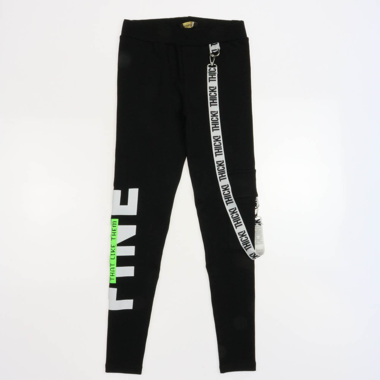 Плотные лосины Yesmina оптом. Лосины украшены печатным принтом, съемным ремнем, сбоку пришит накладной карман.