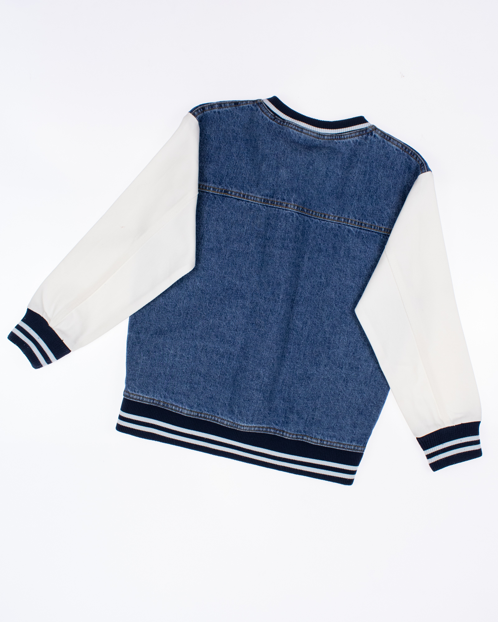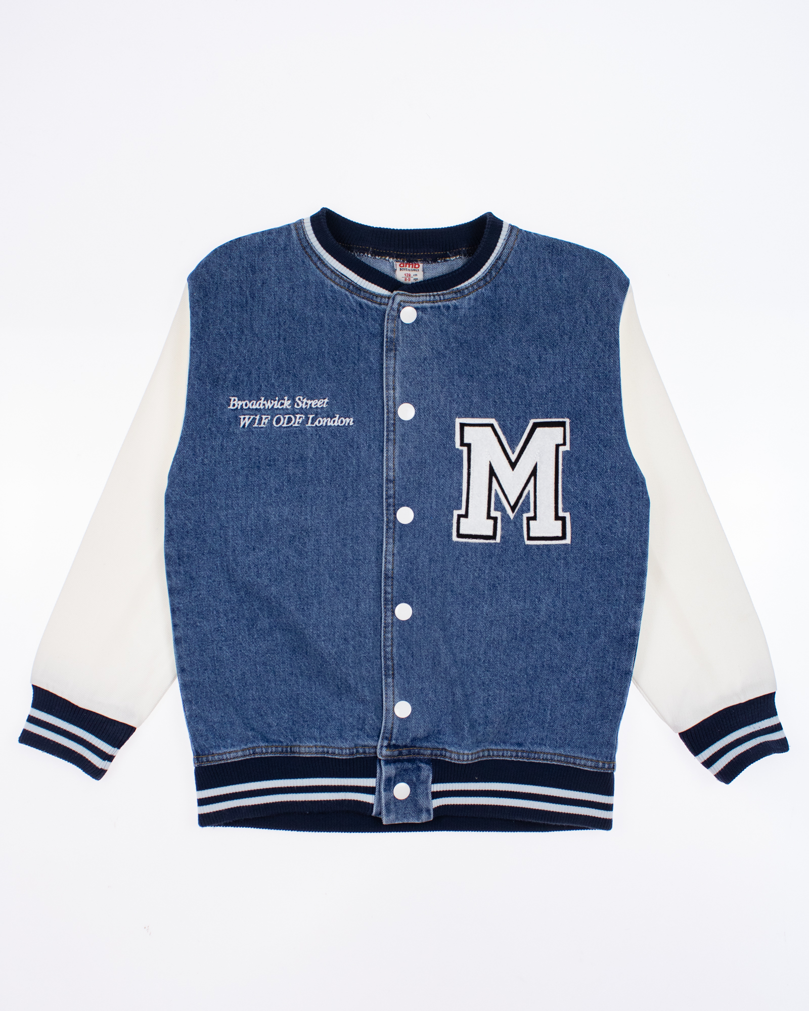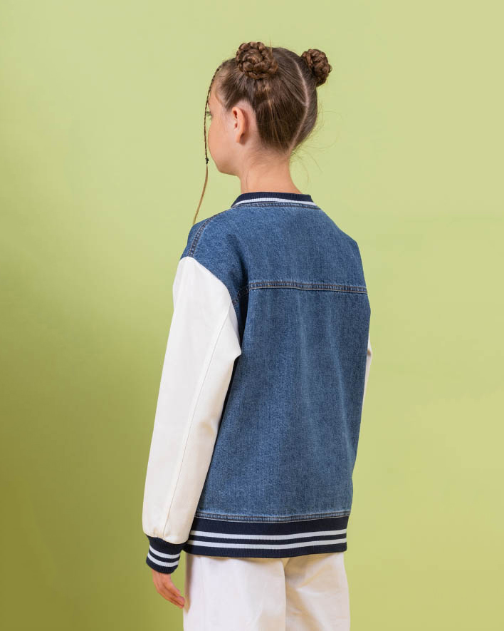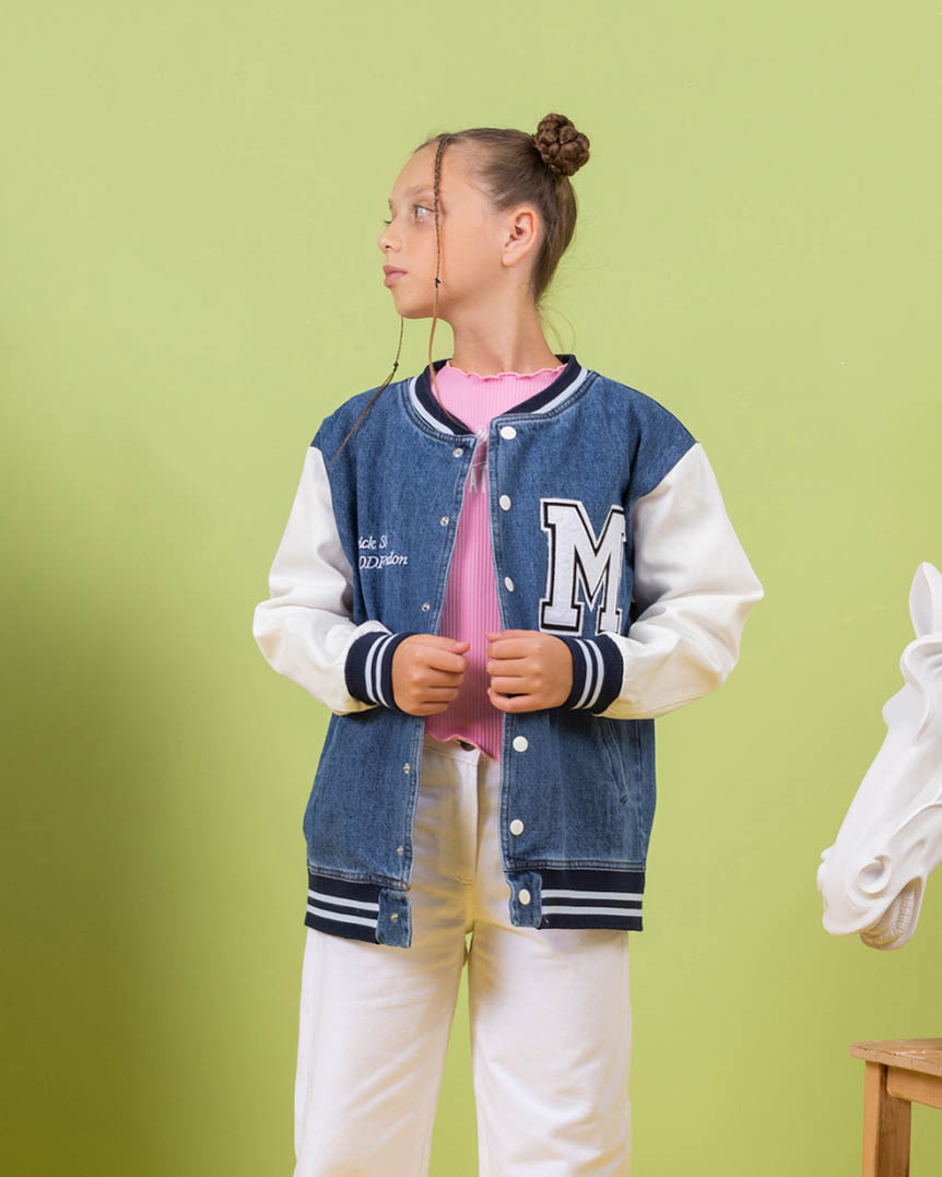 Стильный бомбер Dmb для девочки оптом. Модель выполнена из плотной джинсы, застегивается на кнопки.