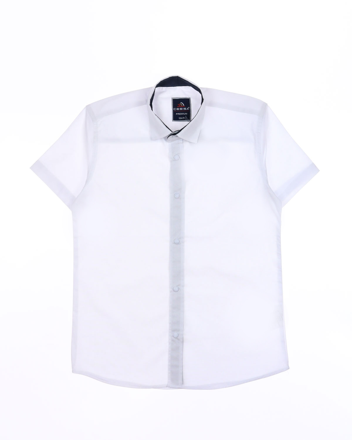 Рубашка  Cegisa для мальчика оптом. Модель приталенного кроя с короткими рукавами, классическим отложным воротничком, застегивается на  кнопки.