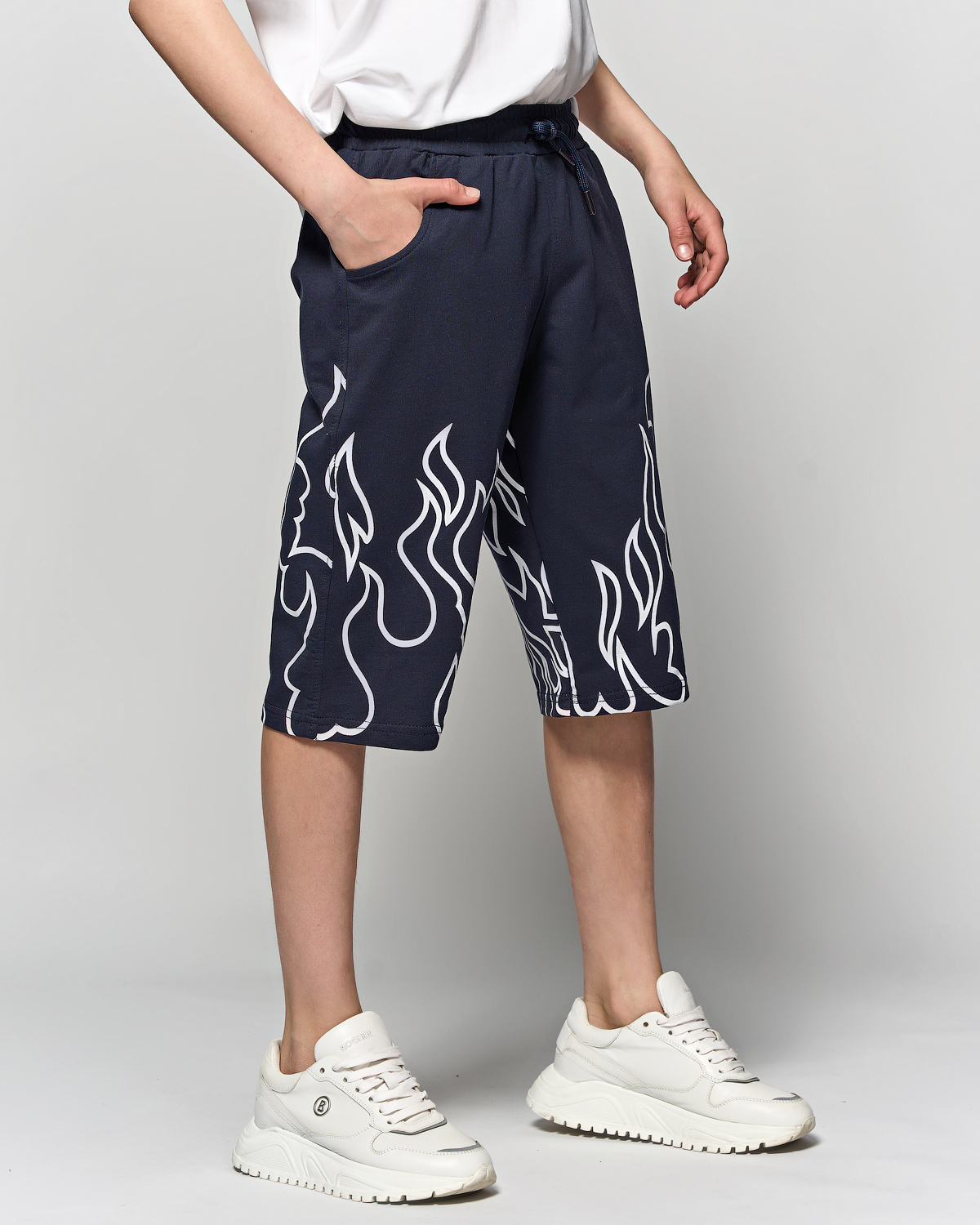 Комфортные бриджи Cegisa для мальчиков из натурального хлопка оптом, украшены принтом. Свободный фасон, эластичная талия с функциональным  шнурком, два кармана спереди.