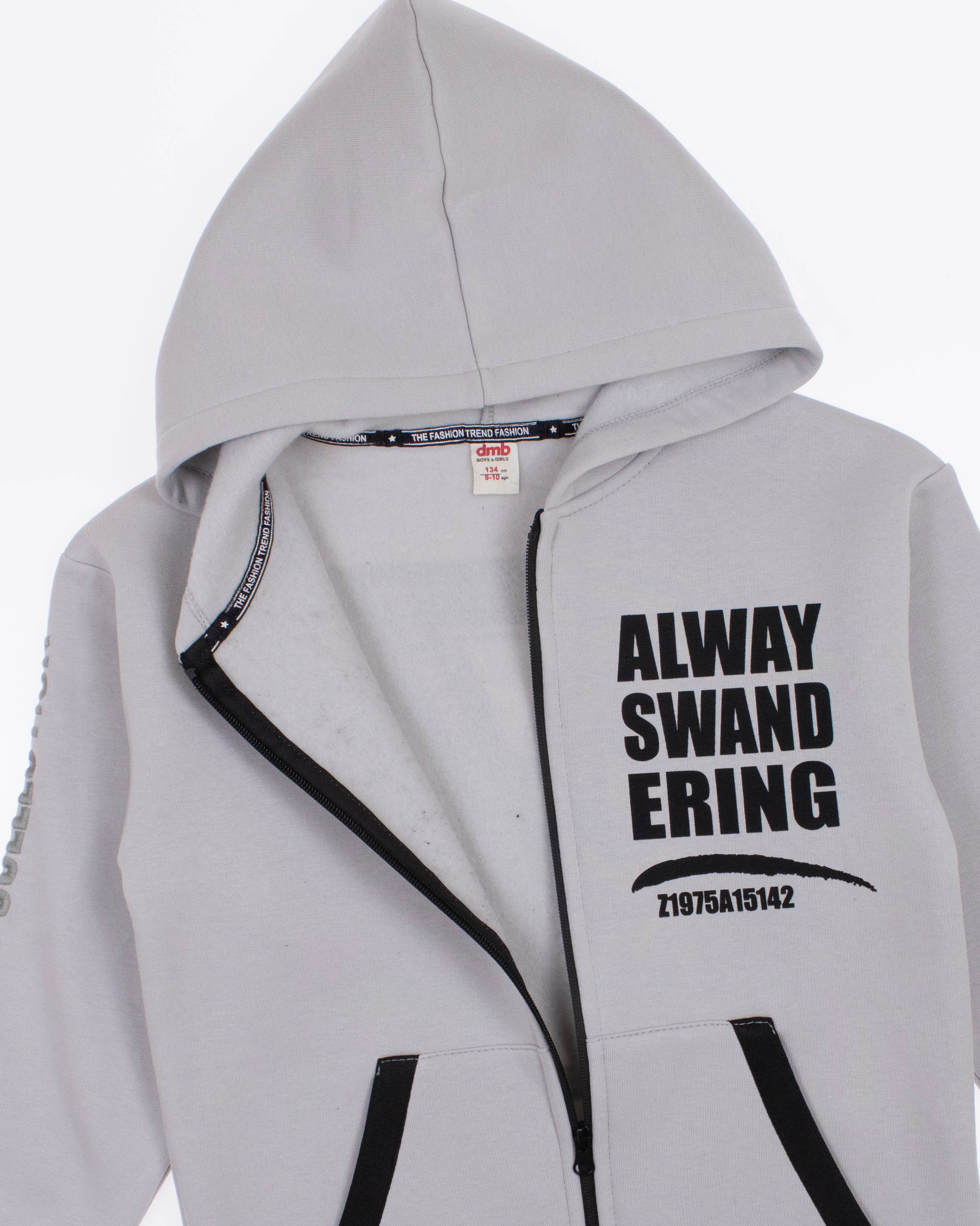 Модная толстовка Dmb для мальчика оптом, выполнена из мягкого трикотажа футер (начес). Толстовка застегивается на молнию, объемный капюшон держит форму, на груди и на спине расположен стильный принт.