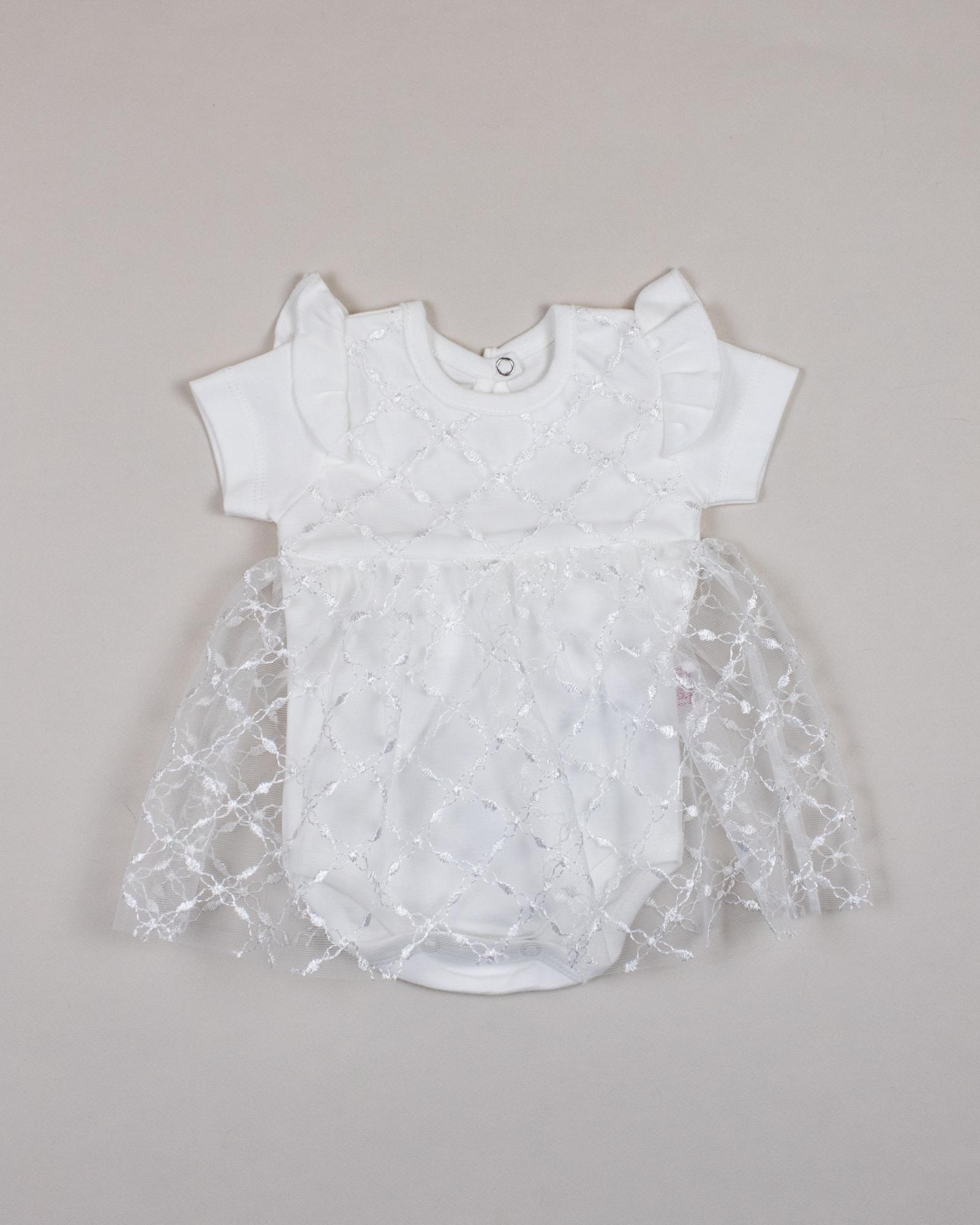 Платье- боди PUAN  с коротким рукавом для малышки очень комфортно в использовании, не стесняет движений. Изготовлено из 100% хлопка. Застежка на спинке и снизу позволит в считанные секунды переодеть ребенка. Юбка выполнена из мягкого кружева.